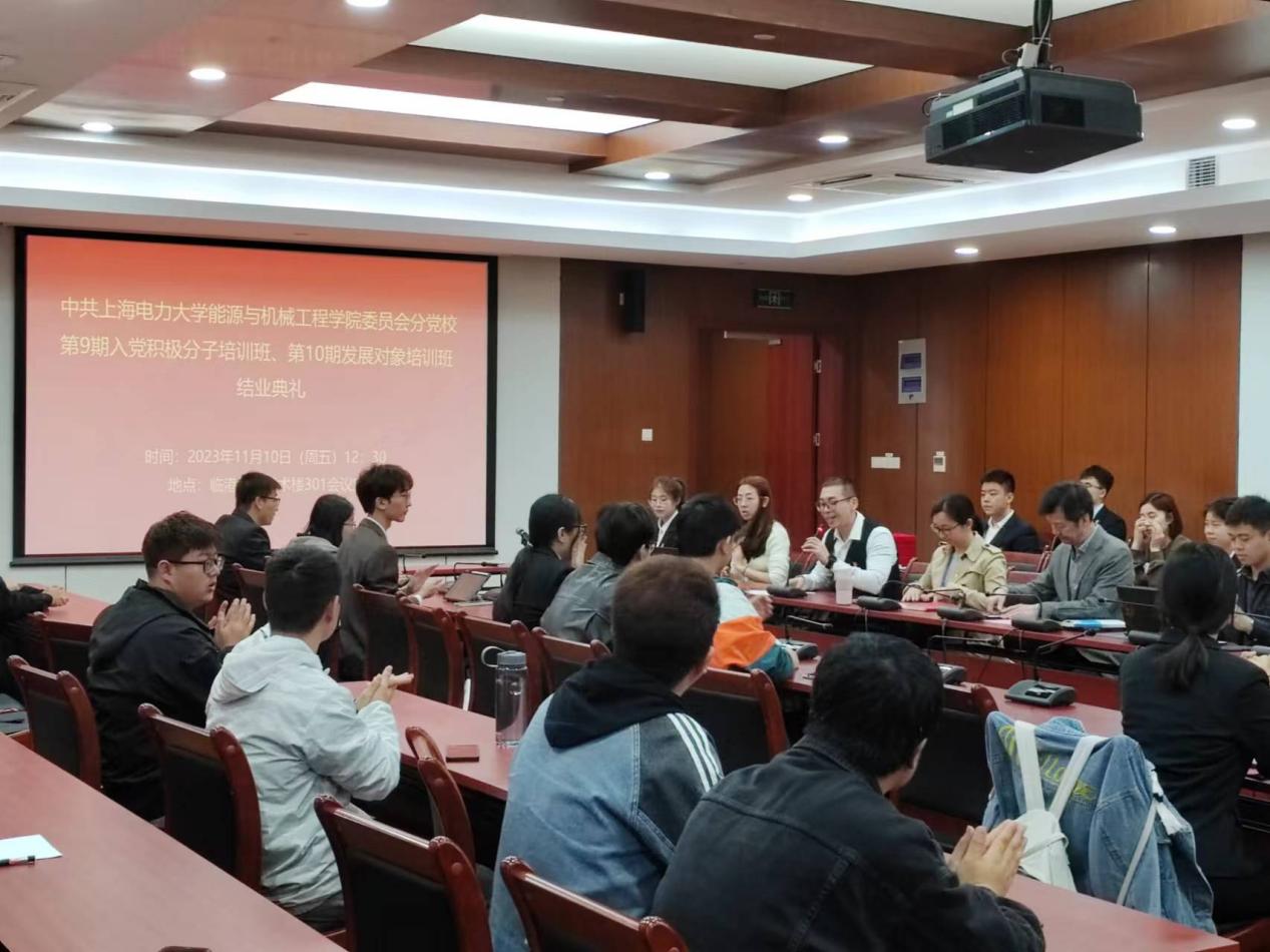 2023年11月10日,能机学院分党校在学术楼301报告厅举办第9期入党积极分子培训班、第10期发展对象培训班结业典礼。能机学院党委书记潘卫国、党委副书记周婷以及全体培训班学员出席会议。